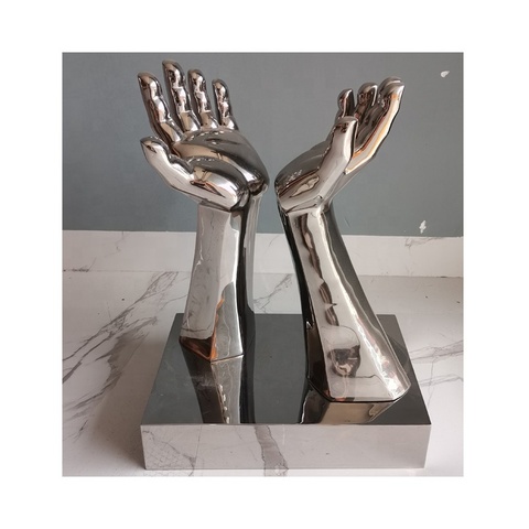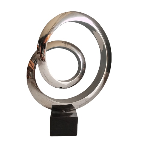 Hecho de acero inoxidable de alta calidad. Esta escultura está pulida hasta el acabado del espejo y tiene un aspecto increíble. Se puede personalizar en tamaño.